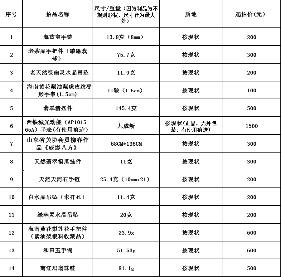 拍卖标的以货物的现状为准,竞买人须在拍卖行展示标的期间到拍卖标的存放地仔细察看标的,充分了解掌握标的现状。标的不做市场流通保证,如需进入市场流通环节,请买受人自行根据相关法律、法规办理市场流通环节所需手续和相关证照及中文标签。如不前往现场查看而参加竞买,视为已对拍卖标的充分了解,并愿承担相关责任,委托人和拍卖人不承担瑕疵担保和其它相关责任。上述标的除法律另有规定外,凡具备完全民事行为能力的公民、法人和其他组织均可参加竞买,有意向竞买人须在京东注册账号并通过实名认证(已注册京东账号的通过实名认证即可),在线支付竞买保证金,具体要求请阅读竞价页面内的《竞买须知》及京东网络拍卖平台的告知拍卖流程(拍卖前必看)的相关准则。